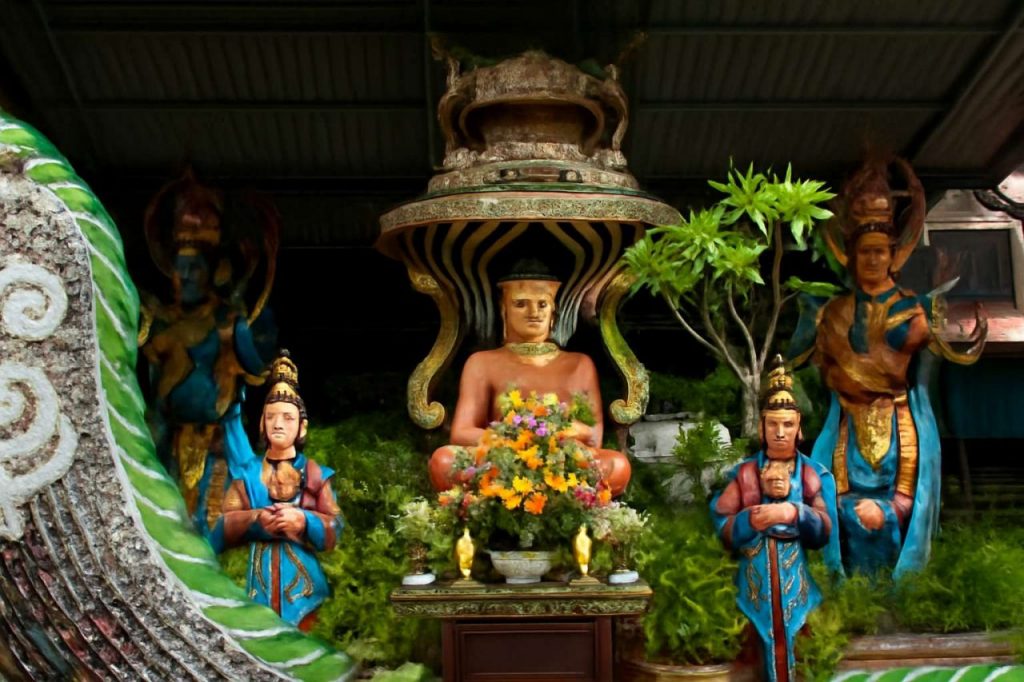 Спускаясь вниз, не забудьте также заглянуть в соседнее строение, состоящее из четырех этажей, где познакомитесь с цветочной богиней Бодхисаттвой. Она состоит полностью из цветков бессмертника и настолько огромна, что для того, чтобы на нее посмотреть, приходится задирать голову. Естественно, Бодхисаттве нужна свита, поэтому вокруг нее – другие богини, высотой всего в три метра.