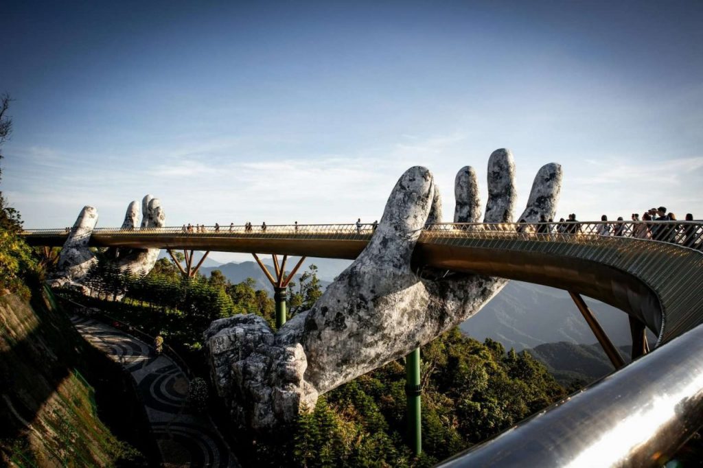 Рядом с курортным городом Дананг, в Ба На Хиллс летом 2018 года был построен огромный мост в виде золотой нити, доставаемой из земли гигантскими руками. На вид этому сооружению сотни, а то и тысячи лет. На самом деле оно создано всего несколько лет назад из стали и стекла.